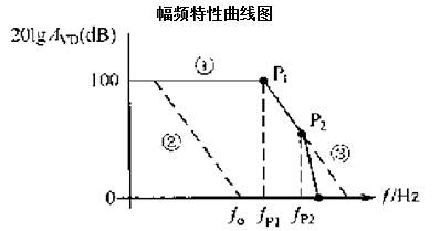 AD8544的內部是一個多級放大器。其對數幅頻特性如圖1所示中的曲線①(實線)。對數幅頻特性曲線在零分貝以上的轉折點稱為極點。圖中,稱P1 P2點為極點。極點對應的頻率稱為轉折頻率,如fp1,fp2,第一個極點,即頻率最低的極點稱為主極點。 在極點處,輸出信號比輸入信號相位滯后45°,幅頻特性曲線按-20dB/10倍頻程斜率變化,每十倍頻程輸出信號比輸入信號相位滯后90。極點越多,越容易自激,即越不穩定。為使集成運放工作穩定,需進行相位(頻率)補償。