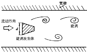 VSF是在流體中安放一根(或多根)非流線型阻流體(bluff body),流體在阻流體兩側交替地分離釋放出兩串規(guī)則的旋渦,在一定的流量范圍內旋渦分離頻率正比于管道內的平均流速,通過采用各種形式的檢測元件測出旋渦頻率就可以推算出流體的流量。
