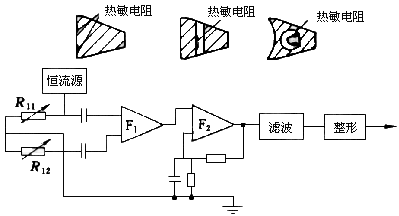 VSF由傳感器和轉換器兩部分組成,如圖3所示。傳感器包括旋渦發(fā)生體(阻流體)、檢測元件、儀表表體等;轉換器包括前置放大器、濾波整形電路、D/A轉換電路、輸出接口電路、端子、支架和防護罩等。近年來智能式流量計還把微處理器、顯示通訊及其他功能模塊亦裝在轉換器內。