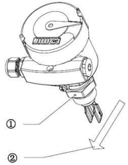 安裝音叉液位開關(guān)時(shí),應(yīng)使叉體面和液體升降或流動(dòng)保持方向一致,可以避免掛料或由于介質(zhì)對(duì)叉體的阻力而產(chǎn)生的測(cè)量誤差,如圖1(a)(b)所示。