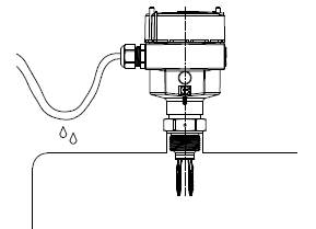 當(dāng)儀表安裝在戶外或有潮氣的環(huán)境中,如遇到下雨或村在冷凝現(xiàn)象時(shí),雨水和冷凝水便會(huì)隨之往下流,所以在接入電纜之前,請(qǐng)將電纜線彎曲并朝下引,以防止水或潮氣進(jìn)入儀表,如圖3所示。