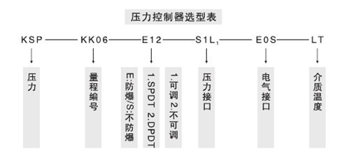 LKKSP壓力控制器:采用膜片式、波紋管、活塞及彈簧管壓元件,普通型可用于對感壓元件無腐蝕作用的氣體、液體或蒸汽等介質(zhì)的場所實現(xiàn)壓力的自動控制。防爆型產(chǎn)品防爆標志為ExedllCT6,可用于對感壓元件無腐蝕作用的氣體、液體或蒸汽等介質(zhì)的llA、llB、llC類T1~T6組爆炸性氣體混合物場所實現(xiàn)壓力的自動控制。控制器的設(shè)定值調(diào)節(jié)范圍為-0.1~40MPa。工作壓力為量程的1.5倍。