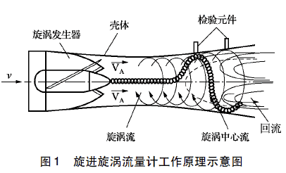 當(dāng)流體通過螺旋形的旋渦發(fā)生體后,流體被迫繞旋渦發(fā)生體中心劇烈地旋轉(zhuǎn),形成旋渦流。旋渦流加速,沿流動方向經(jīng)縮段、流動強(qiáng)度增強(qiáng)。當(dāng)旋渦流進(jìn)入擴(kuò)散段后,在導(dǎo)流體回流的作用下,該旋渦產(chǎn)生二次旋轉(zhuǎn),二次旋渦的頻率與流量與正比。當(dāng)流量計(jì)設(shè)計(jì)得當(dāng)時(shí),在很寬的流量范圍內(nèi),旋渦頻率與流量成線性關(guān)系。該頻率由壓電傳感器檢測,通過流量積算儀進(jìn)行運(yùn)算和處理。顯示流量的瞬間流量和累積總量,并變送輸出對應(yīng)的4-20mA電流信號。